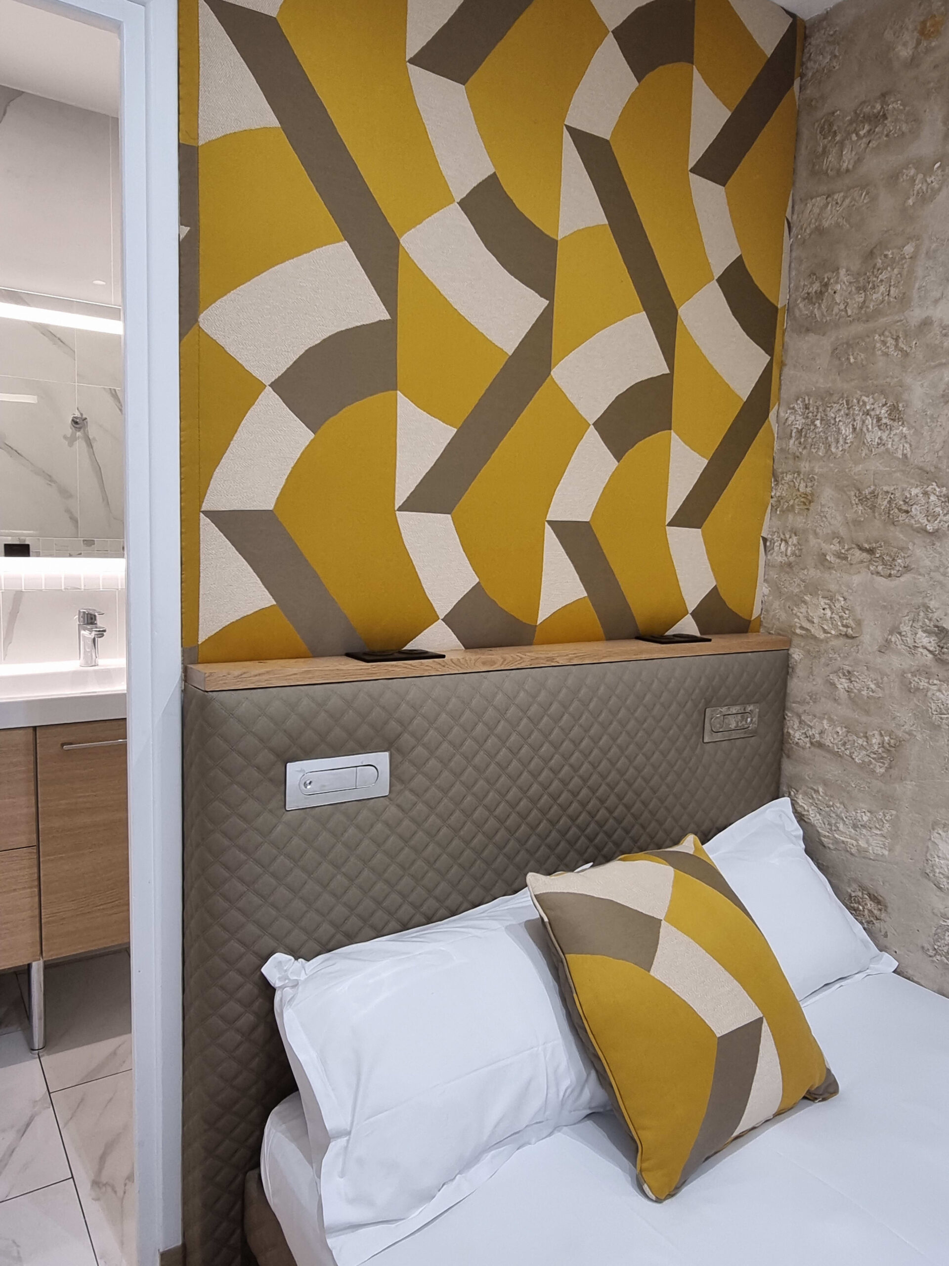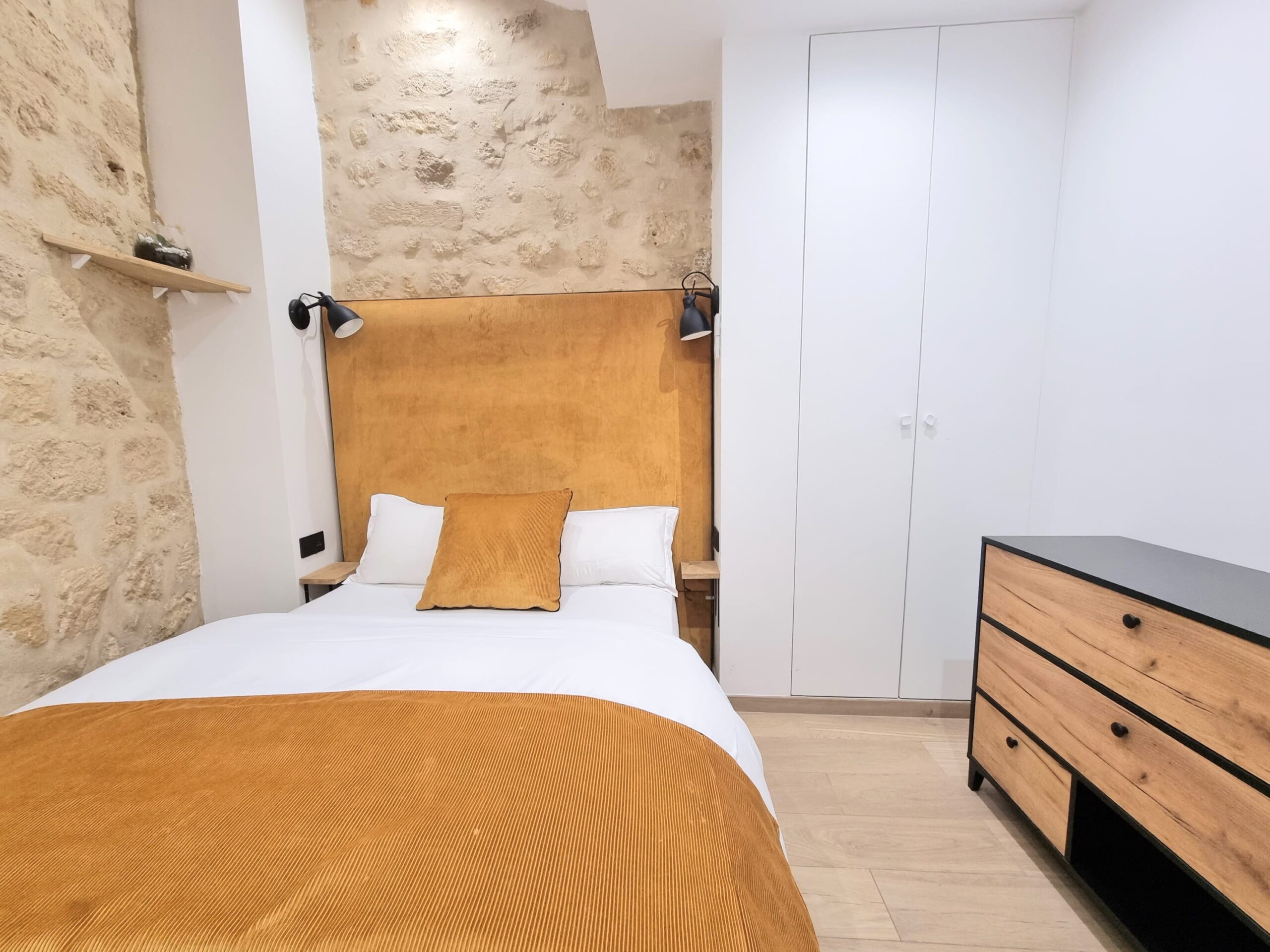 Blending old-world charm—like typical exposed stone walls—with tasteful modern decor and quality bedding, this is the perfect base to explore the unique atmosphere of the Marais on foot.